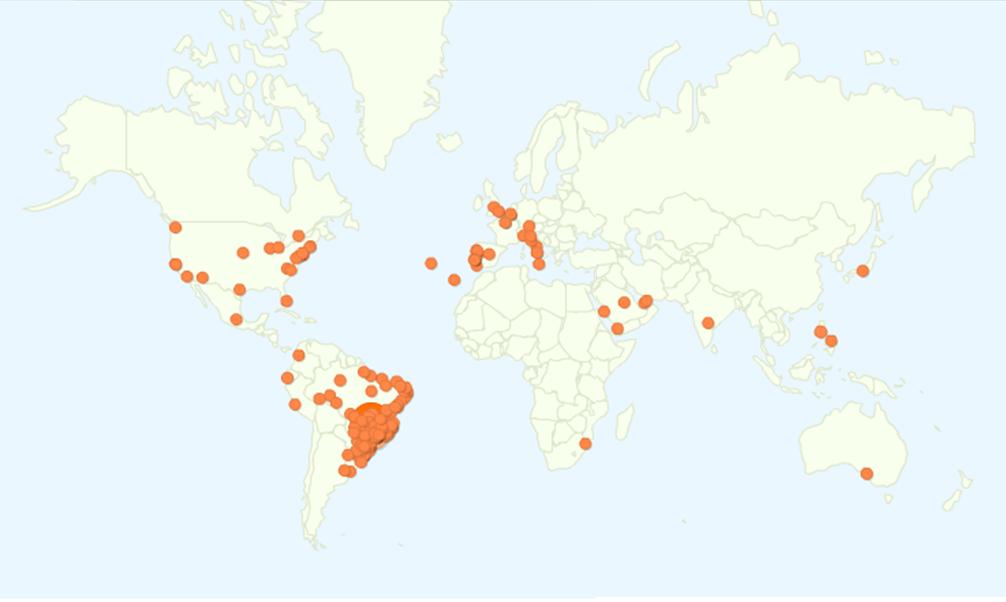 Neste dia marcante para a nossa equipe, alcançamos a marca de 5.016 visitas que vieram de 263 cidades de 30 paÃses de 5 continentes: