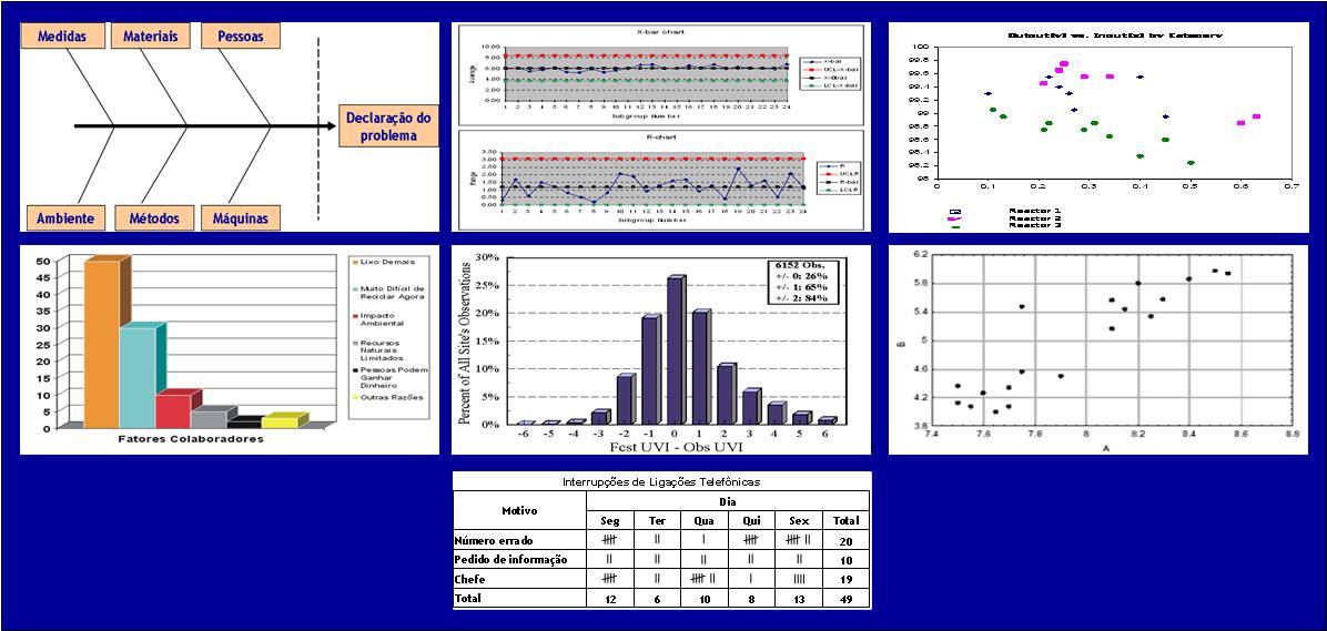 Ilustração das 7 Ferramentas Básicas da Qualidade.