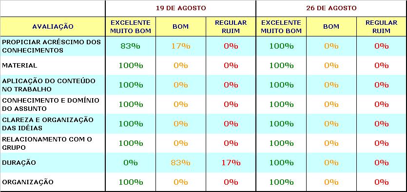 Avaliações feitas pelos participantes das duas turmas deste treinamento: