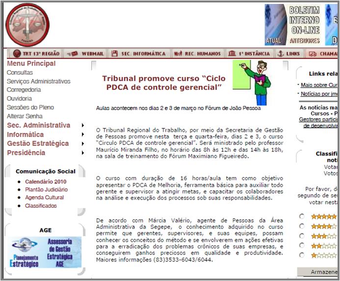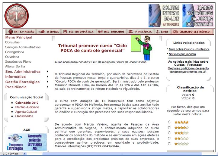 AdvanceConsultoria.com na Intranet do TRT da ParaÃba